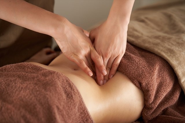 クラリセ―ジ、マジョラム、ラベンダーなど食欲をコントロールするホルモン「セロトニン」の分泌を促すアロマを使った筋膜オイルトリートメントでお身体の歪みや臓器の位置を調整し、内臓機能を活性化。さらに腸セラピーで低下している腸の働きを改善し、基礎代謝をあげていきます。